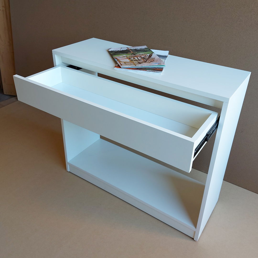 Materiales: Melamina blanca 18 mm, cajon con guia telescopica