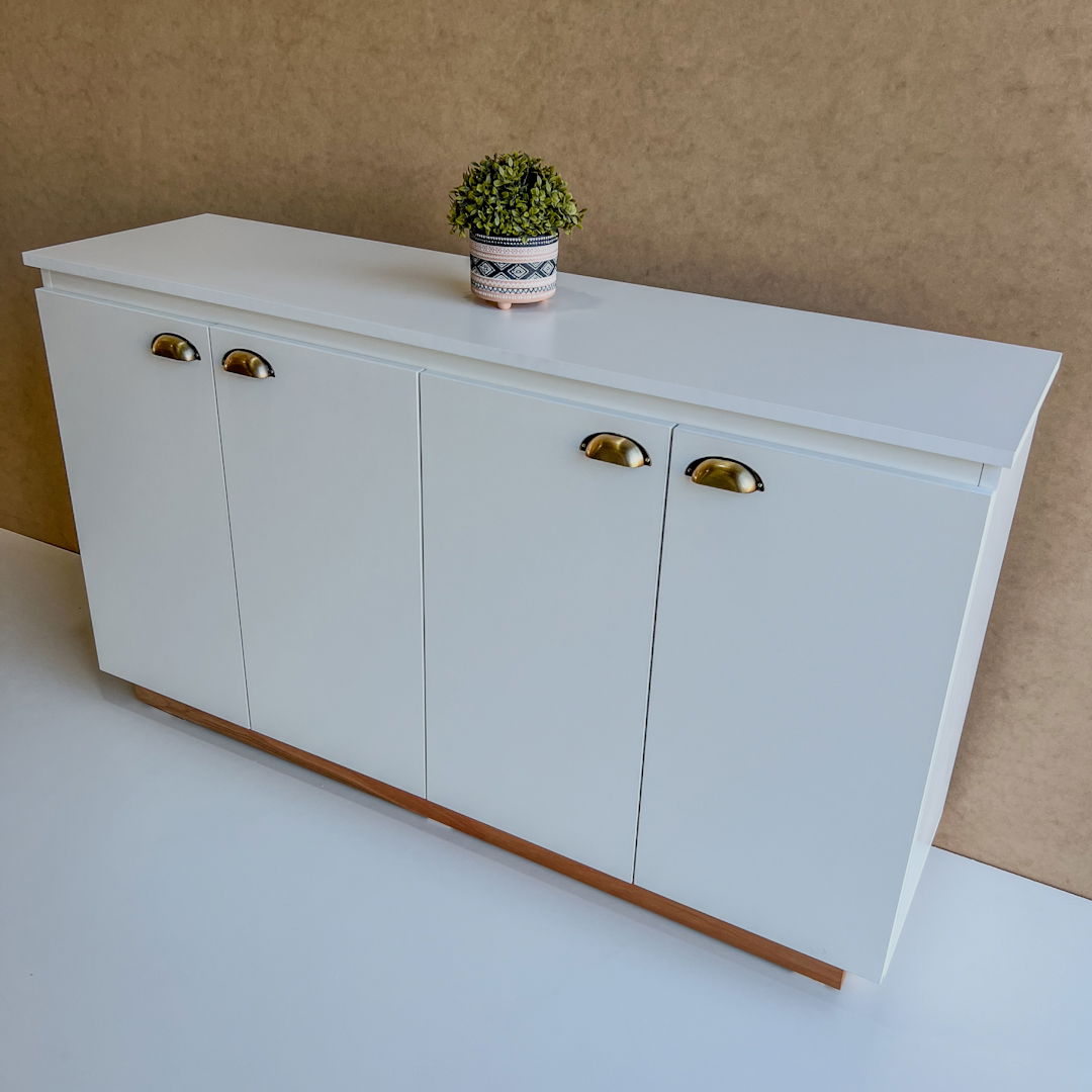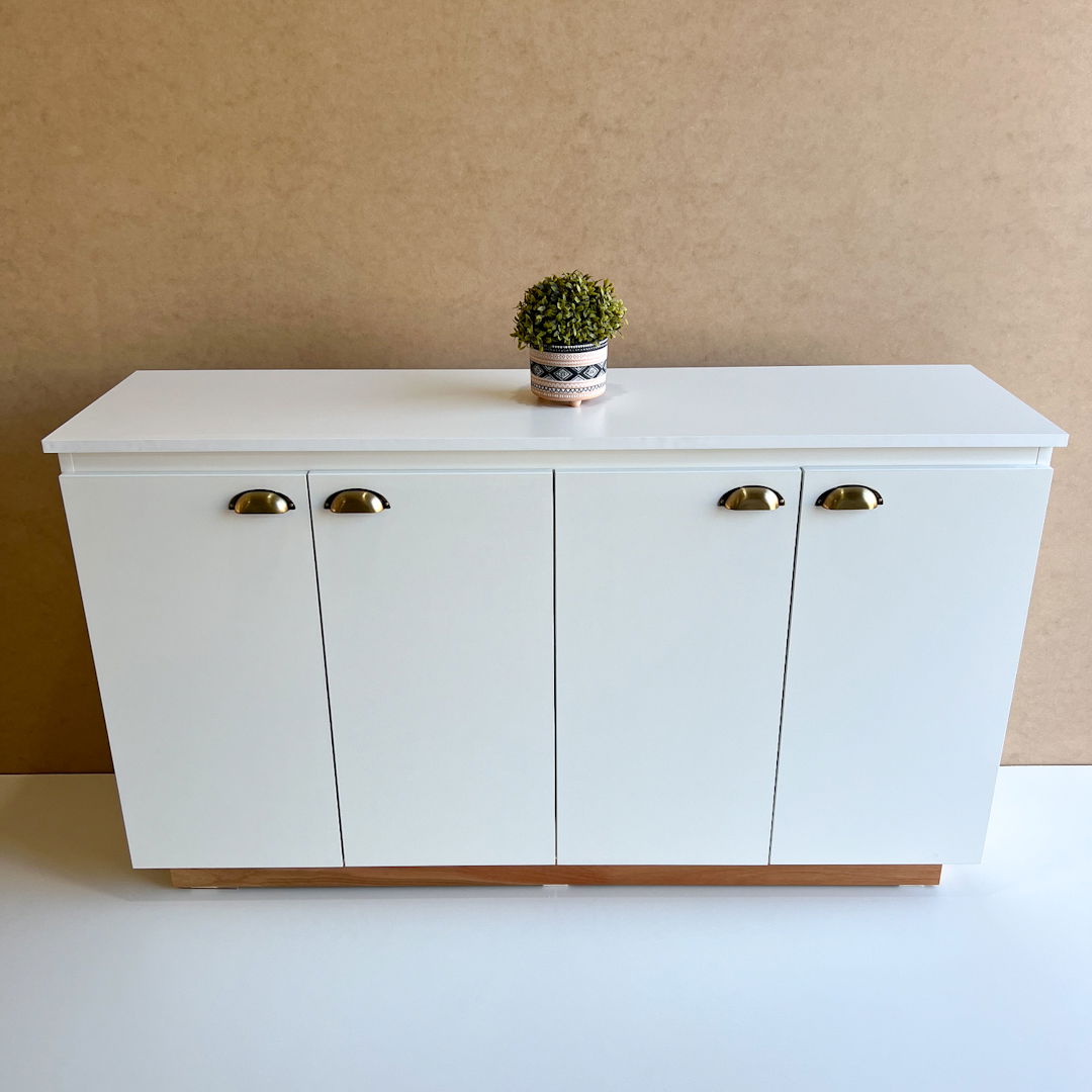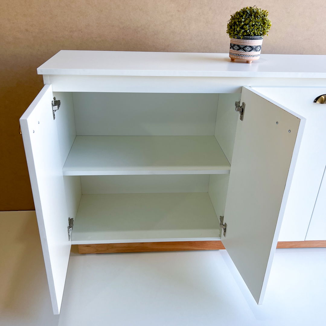 Materiales: Melamina blanca 18 mm, tirador vintage color oro, zocalo de madera con laca.