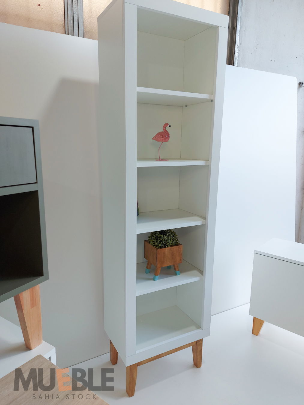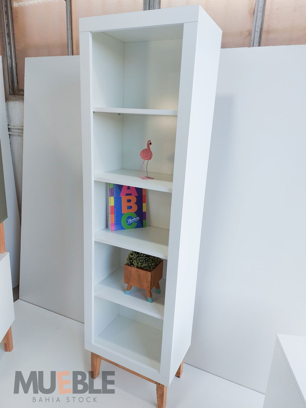 Materiales: Melamina blanca 18 mm, patas en madera.